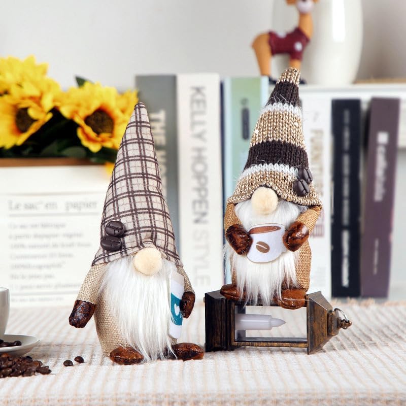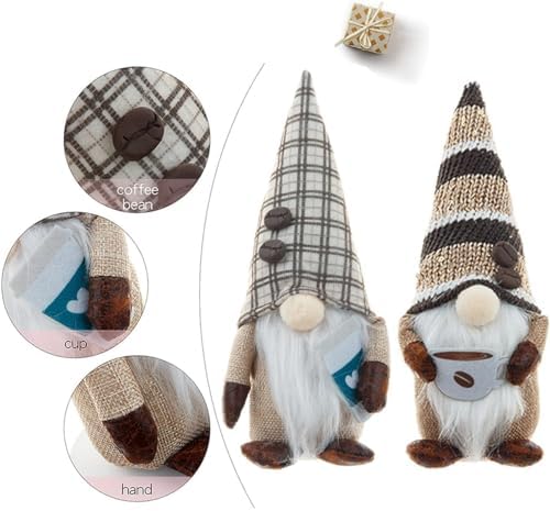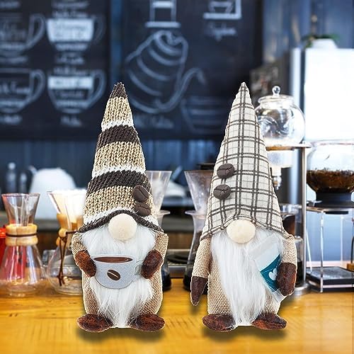 2 Pack Coffee Gnome Plush, Home Decorations for Coffee Bar Farmhouse Kitchen, Cute Handmade Ornaments Dwarf Swedish Elf Gift for Christmas Valentine Thanksgiving Holiday Brown