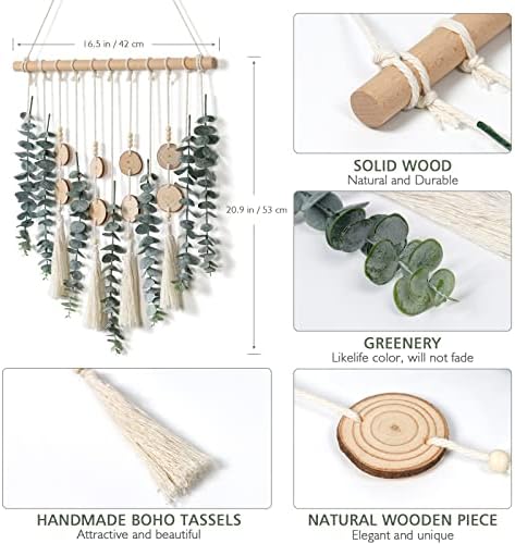 🌿【Material & Size】: The hanging realistic artificial eucalyptus leaves are made of high quality plastic, never wither and always keep green. Wood Stick, Cotton rope, Tassel. Size is 16.5″x20.9″/ 42cmx53cm. (Not including the length of hanging rope)