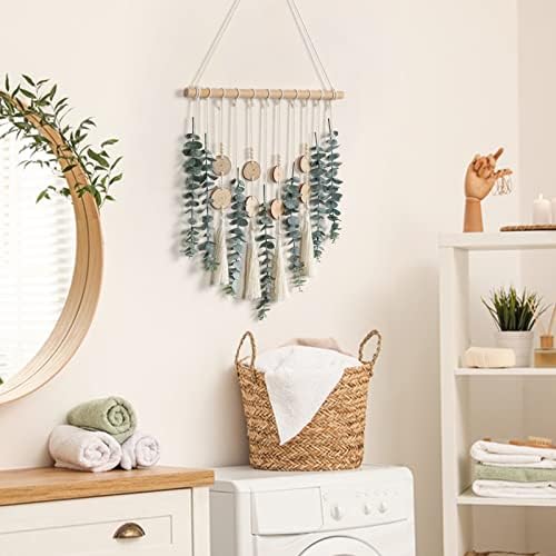 Alynsehom Artificial Eucalyptus Wall Hanging Decor Greenery Boho Chic Home Decorations Farmhouse Rustic Plants with Wooden Stick for Bedroom Living Room Apartment Ornament Gift (Green-3)