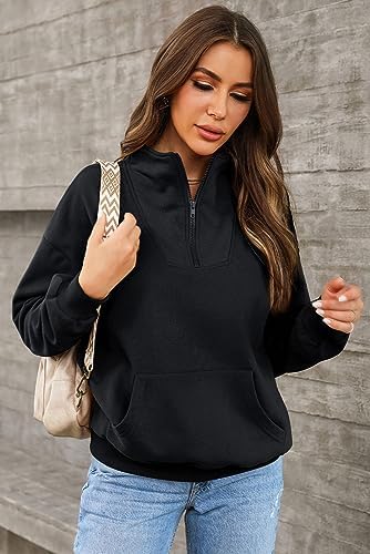 BLENCOT Women Half Zip Oversized Sweatshirt Lightweight Long Sleeve Trendy Fleece Pullover Workout Warm Tops with Pocket