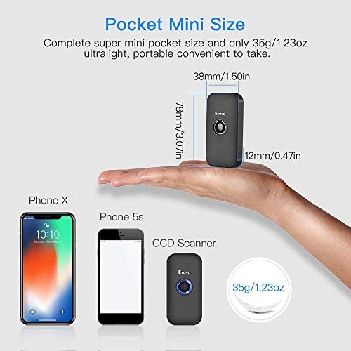 【Super Mini Pocket CCD Scanner】: Completely mini pocket size and 35g/1.23oz ultralightweight, making our this Eyoyo barcode scanner to be a better choice for portable use.