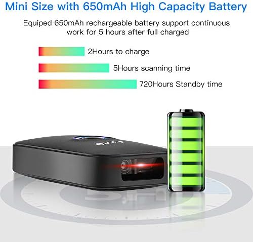 【High Compatibility & 650mAh High Capacity Battery】: Eyoyo scanner can connect with laptop, PC, POS, smartphone, tablet, iPhone, iPad and computers to perfectly work with common operating systems such as windows xp/7/8/10, Mac OS, Linux, Windows Mobile. Also with 650mAh rechargeable battery can continuously work for 5 hours after 2 hours fully charged.