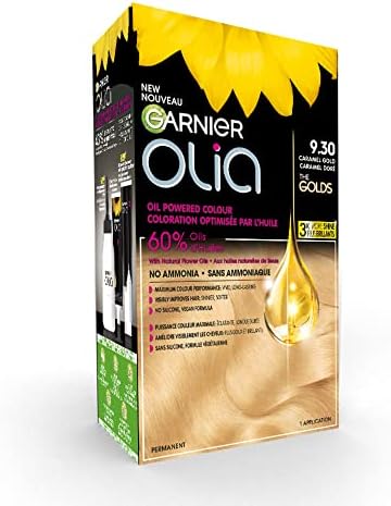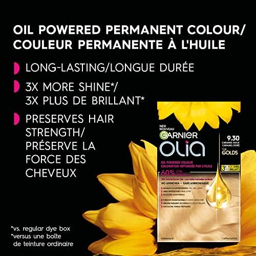 Garnier Olia Permanent Hair Dye, Ammonia-Free Hair Color, 9.30 Caramel Gold, Long-Lasting Hair Shine With 60% Oils, 1 Application