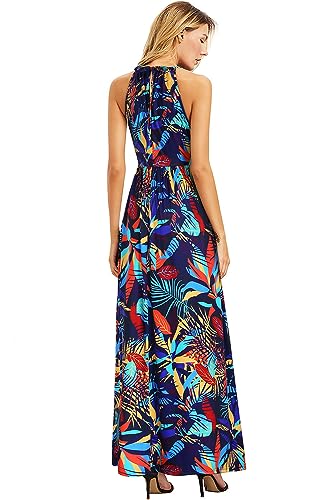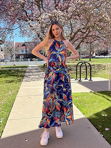 KILIG Women’s Summer Casual Sleeveless Halter Neck Floral Print Beach Party Split Maxi Long Dress Sundress with Pockets
