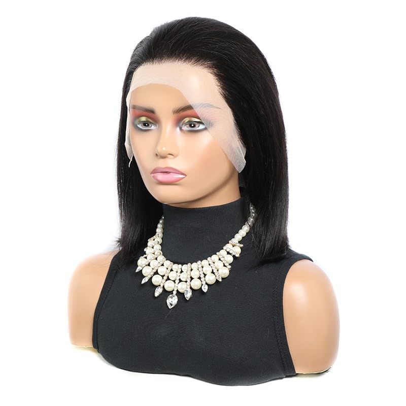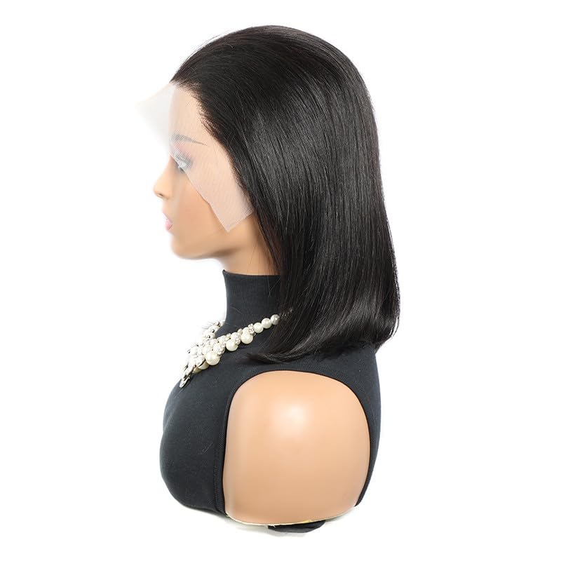 Perruque de cheveux humains raides de 33 x 10,2 cm, densité 200 % HD, cheveux humains pré-épilés pour femmes noires, perruques courtes et raides avec cheveux de bébé, nœuds décolorés, couleur