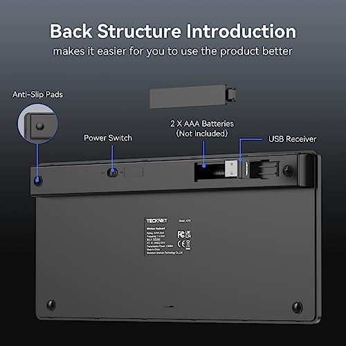 TECKNET Wireless Keyboard, 2.4G Portable Mini Computer Keyboard, Quiet Click, 12 Media Keys, Print Screen Key, Compact Ergonomic USB Keyboard for Laptop, Desktop, Smart TV, Notebook, Chromebook