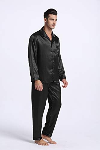 100% Premium satin polyester2-Piece set: long sleeve top+pantsButton down topOne chest pocketElastic waist pants with fly