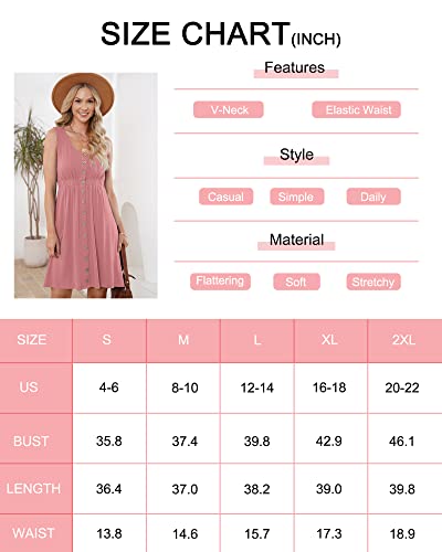 WNEEDU Summer Sleeveless Button Down Dresses V Neck A-Line Tank Elastic Waist Mini Dress with Pockets 2025 New Light Green 2XL