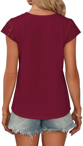 WNEEDU Summer Short Cap Sleeve Lace T Shirts for Women 2024 New